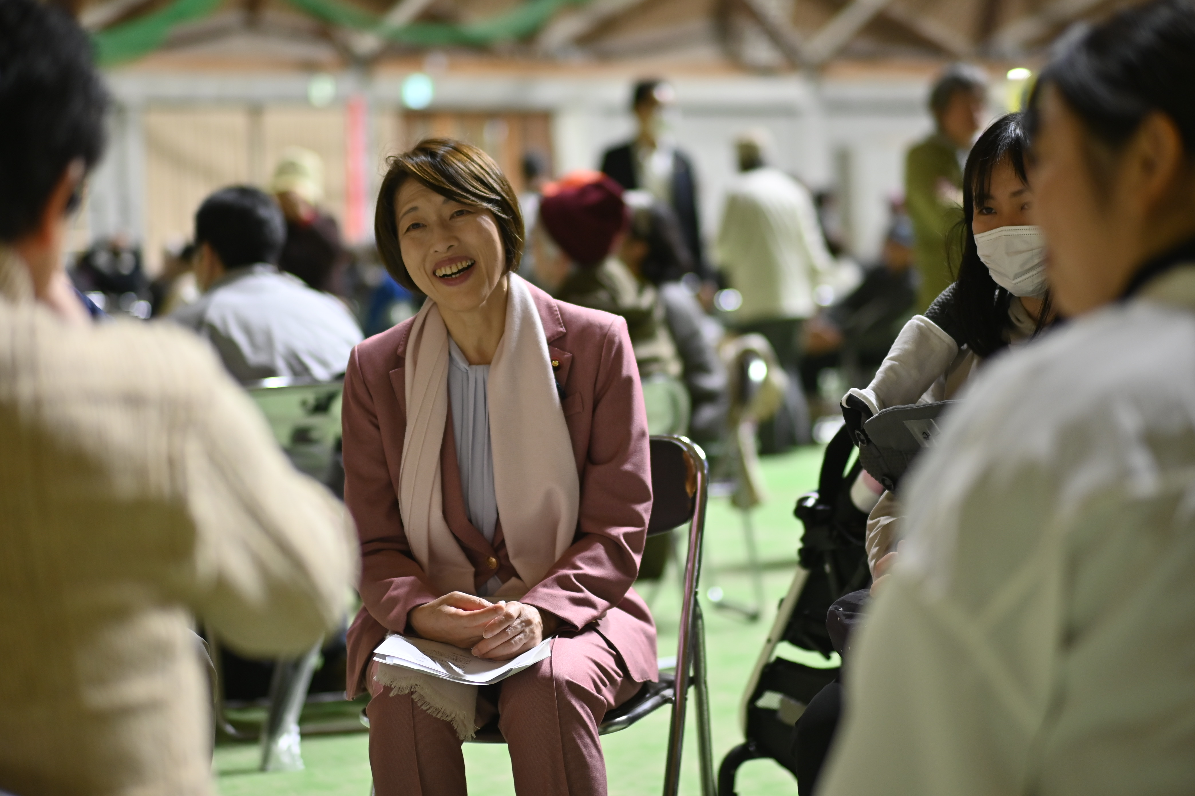 グループ交流には、田村委員長、藤野比例候補も参加。各グループからだされた質問に田村委員長が応え、藤野比例候補が感想を語りました。