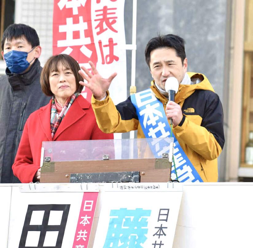 藤野氏は、市民と野党の共闘をリードしてきた長野で、憲法を真ん中にすえた新しい共同を築くことを訴え。「そのためにも共産党を大きくさせて」と呼び掛けました。
